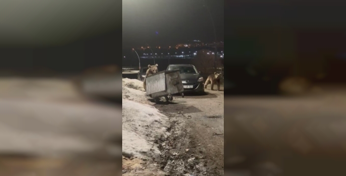 Kars’ın Sarıkamış ilçesinde yerleşim alanına inen bozayılar, çöpte yiyecek ararken görüntülendi.