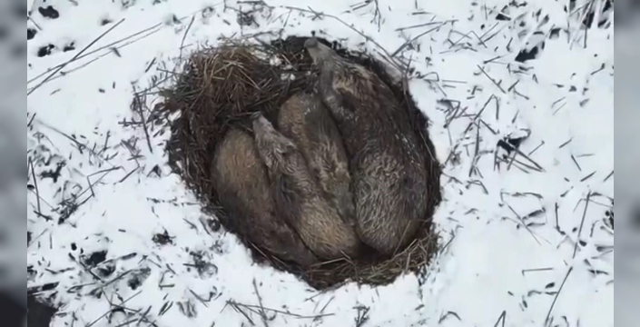 SERHED HABER - Kars’ta bir gölün etrafında bulunan sazlıkların arasında anne domuz, yavrularının bir kısmıyla yumak halinde uyurken, diğer yavruların ise sazlıkların içerisinde yiyecek araması dron ile anbean kaydedildi.