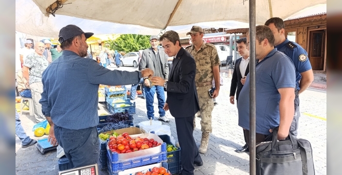 SERHED HABER- Kaymakam Emirhan Arıkan, İlçe Emniyet Amiri Başkomiser Cemil Aydoğan, İlçe Jandarma Komutanı J. Ütğm. Emre Ceylan ve İlçe Milli Eğitim Müdürü Yunus Emre Bozkurt ile birlikte ilçede kurulan pazar yerini ziyaret ederek vatandaşlar ve esnafla bir araya geldi.