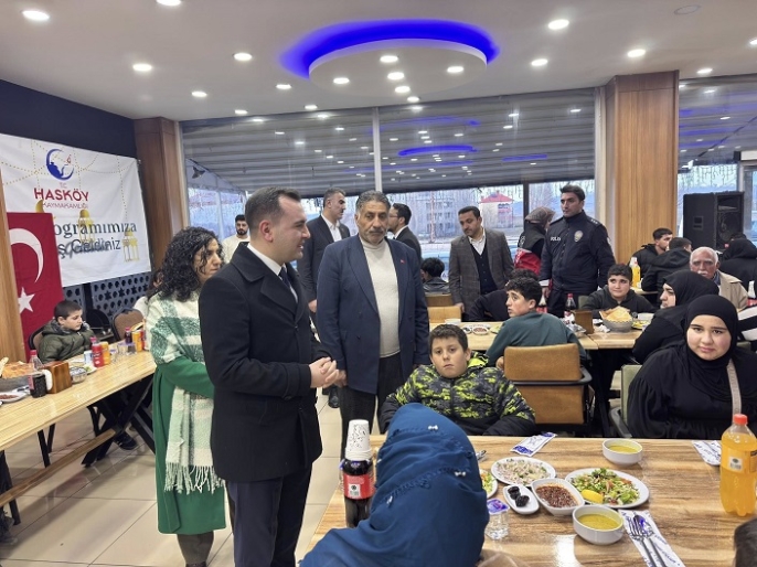 Düzenlenen iftar programına Hasköy Kaymakamı İsmail Güney, Hasköy Belediye Başkanı Cemal Orbay ve ilçe protokolü katıldı. Ramazan ayının birlik, beraberlik ve dayanışma ruhunun hissedildiği programda yetim ve öksüz çocuklar ile aileleriyle yakından ilgilenildi.