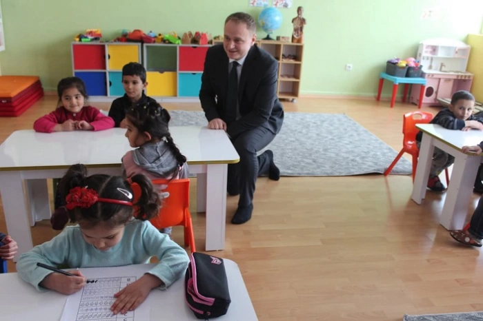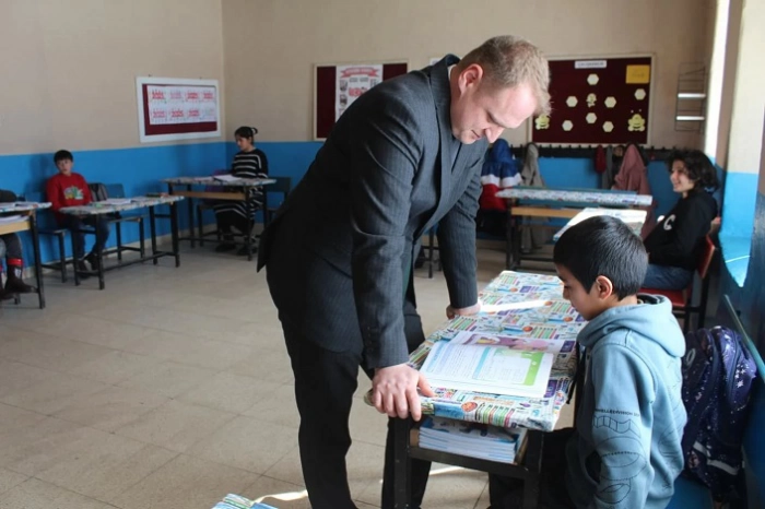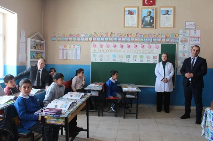 Okulları ziyaret eden Koşansu, öğrencilerin derslerine katılıp hediye verdi.
