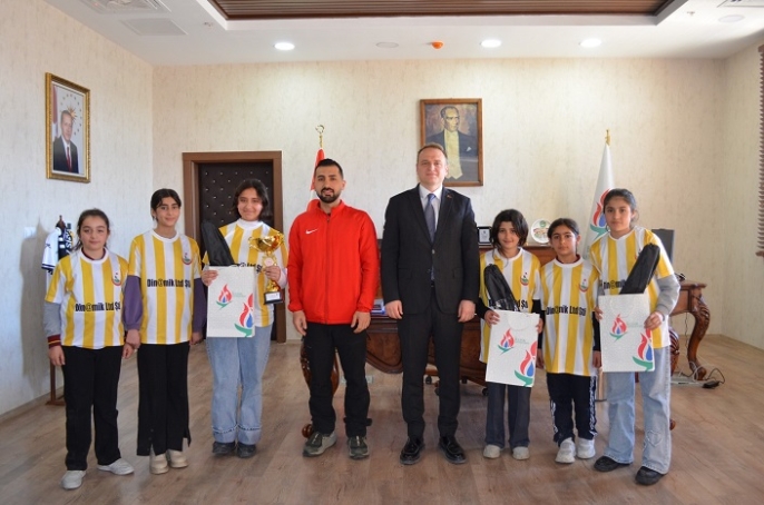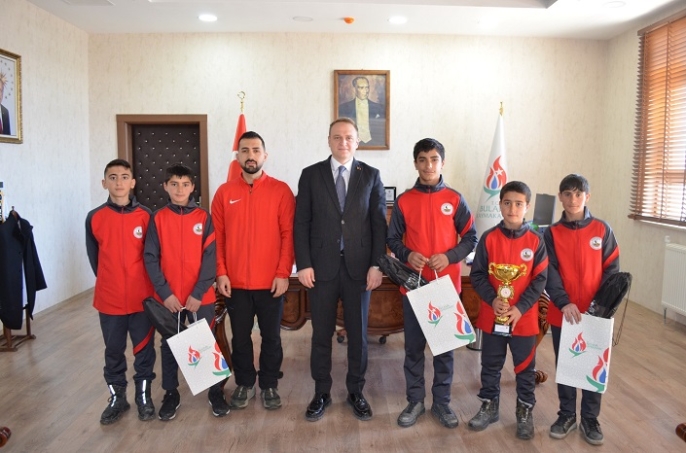 Ziyaret sırasında öğrenciler elde ettikleri başarıyı Kaymakam Koşansu ile paylaşırken, spor alanında yeni hedeflere ulaşmak için çalışmalarını sürdüreceklerini ifade etti.