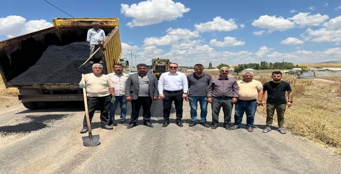 Kaymakam Koşansu, yolda başlatılan asfalt çalışmalarını inceledi, ilgililerden bilgi aldı.
