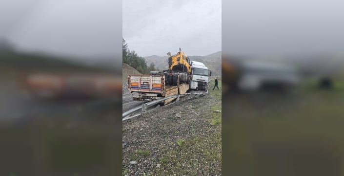 Edinilen bilgiye göre, dün Elazığ-Malatya karayolunda sürücüsünün direksiyon hakimiyetini kaybettiği tır, yoldan çıkıp şarampole girmiş ve 1 kişi yaralanmıştı. Ardından vinç ile kaldırılan tır, başka bir tıra yükledi. Yola çıkan Y.G. idaresindeki 34 RG 315 plakalı tırda Diyarbakır karayolu Maden mevkiinde yoldan çıkarak bariyerle çarptı. Kazada yaralanan olmazken, her iki tırında kaldıraması için bölgeye vinç ve başka bir tır gönderildiği öğrenildi.