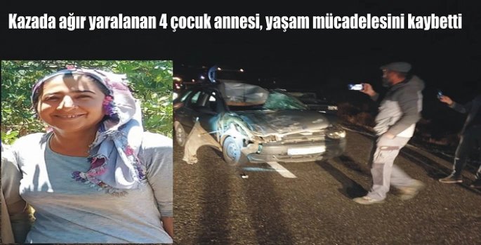 Kaza da ağır yaralanarak hastaneye kaldırılan ağır yaralılardan 4 çocuk annesi 41 yaşındaki Duriye Günebakan, 10 gündür yoğun bakımda verdiği hayat mücadelesini kaybetti.