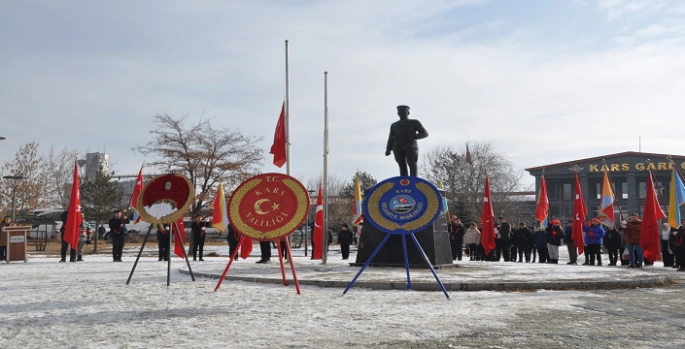 SERHED HABER - Tören TCDD Gar Binası önünde bulunan Kazım Karabekir Paşa’nın Anıtı’na Kars Valisi Ziya Polat, 14. Mekanize Piyade Tugay Komutanı Tuğgeneral Şahin Yenilmez ve Belediye Başkan Vekili Turgay Kızılörenli tarafından çelenk sunulmasının ardından, saygı duruşunda bulunuldu ve İstiklal Marşı okundu.