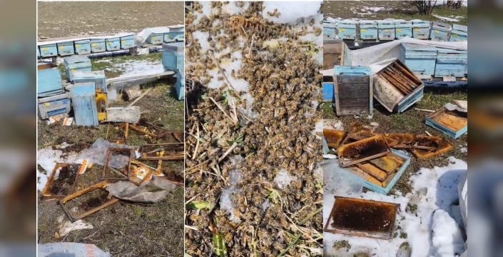 Alınan bilgilere göre, Akçalı köyü mevkiinde arıcılıkla uğraşan 75 yaşındaki Hidayet Aldıran’a ait arılı kovanlara akşam saatlerinde ayılar saldırdı. Toplam 250 kovanın bulunduğu alanda yaklaşık 50 arılı kovanın tahrip olduğu öğrenildi.