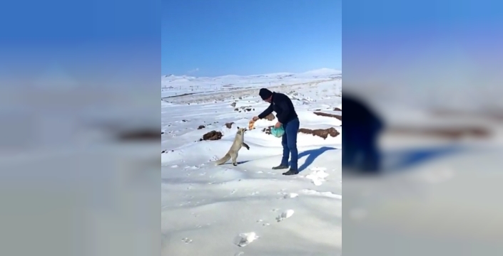 Ahlat ilçesine bağlı Kırklar Mahallesi’ndeki pomza madeni işletmesinde çalışan işçiler, uzun süredir bölgeye gelen tilkiyi yalnız bırakmıyor. Özellikle kış aylarında kar örtüsü nedeniyle doğada yiyecek bulmakta zorlanan tilki, neredeyse her gün maden sahasına gelerek işçilerin bıraktığı yiyeceklerle karnını doyuruyor. Ramazan ayı olmasına rağmen tilkiyi unutmayan işçiler, yanlarında getirdikleri ekmek ve yemek artıklarıyla sıradışı misafirlerini besliyor. İşçiler, tilkinin zamanla kendilerine alıştığını ve her gün belirli saatlerde maden ocağı çevresine geldiğini söyledi.