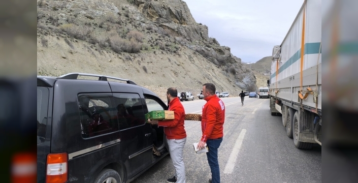 Hakkari-Van kara yolunda meydana gelen heyelan nedeniyle ulaşımın durduğu bölgede yolda mahsur kalan vatandaşlara Türk Kızılay tarafından kumanya desteği sağlandı.