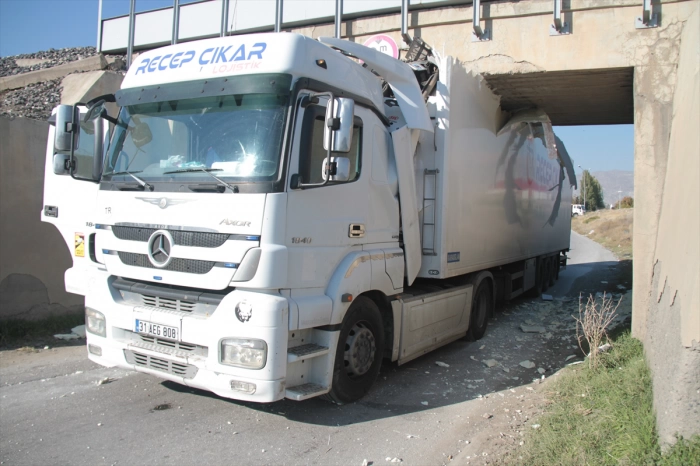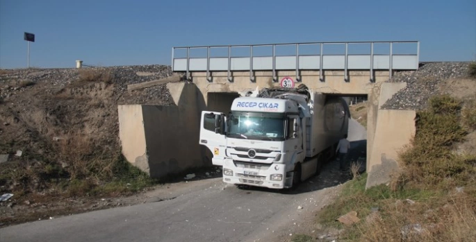SERHEDHABER - Ersevenler Mahallesi'nde sürücüsünün ismi öğrenilemeyen 31 AEG 808 plakalı tır, demir yolunun bulunduğu köprünün altından geçerken dorsenin tavan teması nedeniyle sıkıştı.