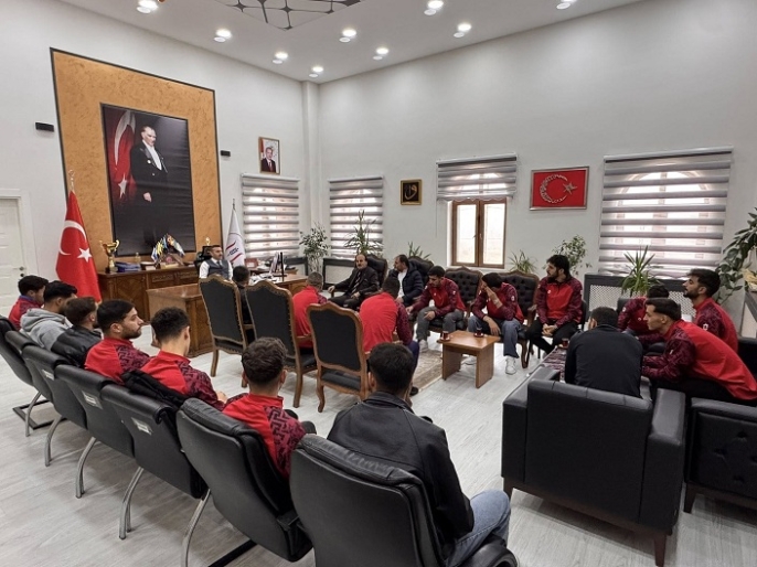 Ziyaretin sonunda Korkutspor yönetimi ve futbolcuları, misafirperverliği için Kaymakam Ayaz’a teşekkür etti.