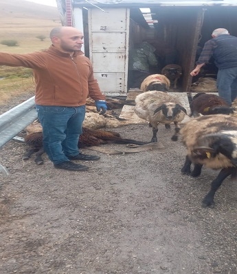 SERHED HABER - Koyun yüklü bir TIR bir anda kontrolden çıkarak yan yattı. Dakikalar içinde can pazarı başladı.