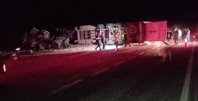 SERHED HABER - Edilen bilgiye göre Malatya istikametinden Adıyaman istikametine gitmekte olan canlı küçük baş hayvan yüklü S. G. idaresindeki 23 AEF 995 plakalı tır Karanlıkdere mahallesi mevkiine geldiğinde sürücüsünün direksiyon hakimiyetini kaybetmesi sonucu kontrolden çıkarak orta refüje devrildi. Yaşanan kazada onlarca koyun etrafa savrularak telef olurken, sürücü ile araçta yolcu olarak bulunan N.A., H.I. yaralandı .
