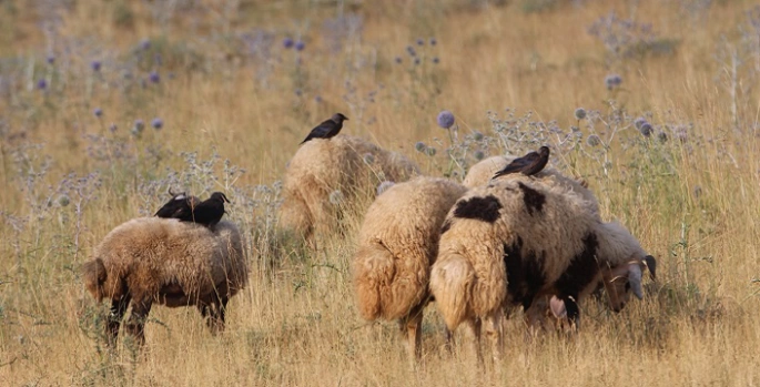 SERHED HABER - Nüfusun büyük bölümünün hayvancılık yaptığı Van'da yaklaşık yaklaşık 3,5 milyon küçükbaş hayvan bulunuyor. İlkbaharda yaylalara çıkan küçükbaş sürüleri, yaz boyu burada yaşıyor. Muradiye ilçesine bağlı Han Mahallesi sakinleri, hayvanlarını meraya çıkarıp karınlarını doyuruyor. Hayvanlar merada otladığı sıra sürülerin üzerine konan kuşlar, koyun ve keçilerin üstündeki parazit ve böcekleri yiyerek karnını doyuruyor. Üzerilerine konan kuşlardan rahatsız olmayan küçükbaş hayvanlar, kuşların daha fazla böcek yakalaması için hareketsiz durarak kolaylık sağlıyor. Özellikle sığırcık, küçük karga ve saksağanın koyunların üstündeki böcekleri yeme anı kameraya yansıdı.