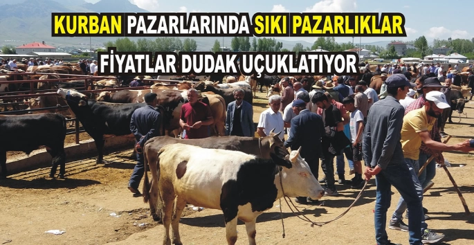 Van'da besicilerin özenle yetiştirdiği kurbanlıklar, sabahın erken saatlerinde canlı hayvan pazarına getirildi. Kurban Bayramı'na günler kala hayvan pazarındaki yoğunluk ise artış göstermeye başladı. Alıcılarla sıkı bir pazarlığa giren besiciler, bu yılki Kurban Bayramı'ndan beklentilerinin yüksek olduğunu ifade etti. Van'ın İpekyolu ilçesine kurulan canlı hayvan pazarında küçükbaş hayvanlar 7 ila 8 bin liradan başlayan fiyatlarla alıcı bulurken, büyükbaş kurbanlık fiyatları ise 70 ila 80 bin liradan başlayıp 160 bin liraya kadar çıkabiliyor.