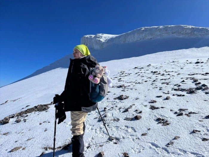 Sporcu Meryem, hayallerini süsleyen dağın zirvesine kendisi ve kardeşlerine ait ayıcık oyuncaklarla çıktı. Zirvede ayıcıklarla fotoğraf çektiren Meryem ve beraberindekiler daha sonra inişe geçerek faaliyeti sorunsuz gerçekleştirdi.