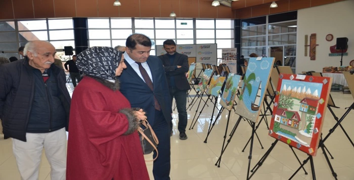Daha sonra açılış kurdelesi kesilerek sergi gezildi. Kış Yarısı Karma Atölye Performans Sergisi'nde farklı branşlarda toplam 320 eser sergileniyor. Sergide, 77 yaşındaki Selahattin Oğuz'un da kabartma resim eserleri yer alıyor. Emekli olduktan sonra hobi olarak başladığı kabartma resim alanında 600'e yakın eser üreten Sanatçı Oğuz, yaklaşık 10 yıldır resim kabartma sanatıyla uğraşıyor. En büyük hayalinin bir sergi açmak olduğunu belirten Oğuz, “Açılan sergiye davet edilmem beni çok mutlu etti. Hayalimi gerçekleştirdim” dedi.