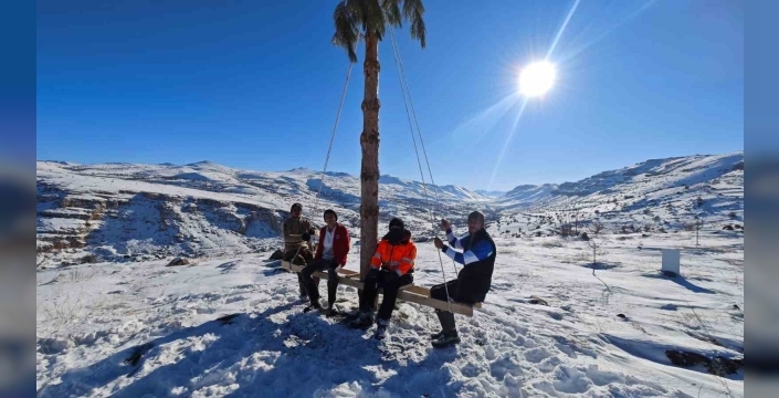 Dört kafadar arkadaş, kurdukları salıncak üzerinde de vakit geçirerek kış mevsiminin tadını doyasıya çıkardıklarını belirtti.
