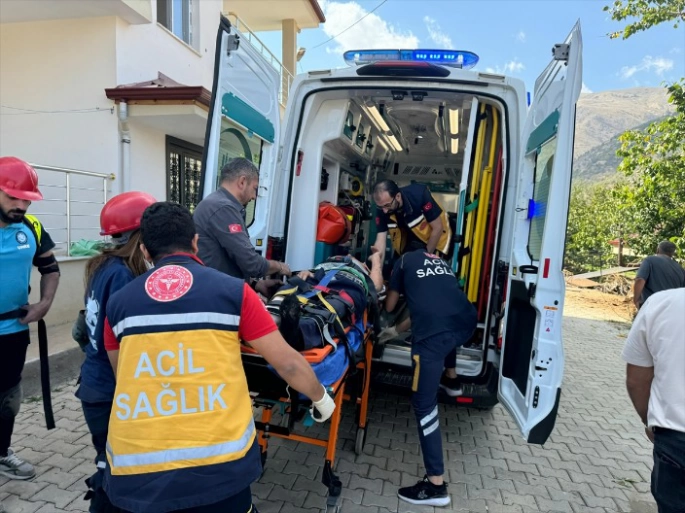 Akça Mahallesi'ndeki evinin duvarı ayağının üstüne devrilen kişi, UMKE ekipleri tarafından çıkartılarak 112 Acil Servis ambulansıyla hastaneye kaldırıldı.
