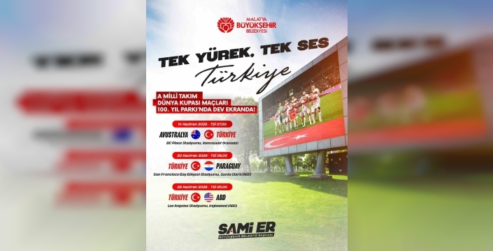 Milli maç günlerinde 100. Yıl Parkı adeta bir futbol şölenine dönüşecek. Türk bayraklarıyla donatılacak alanda marşlar eşliğinde tek yürek olacak vatandaşlar, A Milli Takımın her anını büyük bir heyecanla takip edecek. Ailelerin, gençlerin ve çocukların katılımıyla oluşacak bu atmosfer, Malatya’da birlik, beraberlik ve dayanışma duygularını da güçlendirecek. A Milli Takımın grup aşamasındaki karşılaşmaları 14 Haziran 2026 tarihinde saat 07.00’de, 20 Haziran 2026 tarihinde saat 06.00’da ve 24 Haziran 2026 tarihinde saat 05.00’de oynanacak olup, tüm bu karşılaşmalar 100. Yıl Parkı’nda dev ekranda canlı olarak yayınlanacak. Turnuvada milli takımın ilerlemesi durumunda oynanacak eleme ve final karşılaşmaları da aynı şekilde Malatyalılarla buluşturulacak.