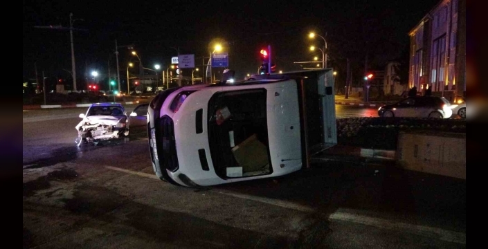 Malatya’da otomobil ile çarpışan kamyonetin devrilmesi sonucu 1 kişinin yaralandığı kazanın kamera görüntüleri ortaya çıktı.
