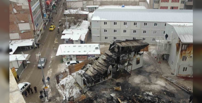 Malatya’da dün akşam saatlerinde Battalgazi ilçesi İzzetiye Mahallesi Nasuhi Caddesi’nde bulunan bir şantiyede işçilerin kaldığı prefabrik yatakhanede çıkan yangın kısa sürede büyüdü. Yangının hızla yayılmasıyla beraber çok sayıda prefabrik yapı küle dönerken geriye demir yığınları kaldı. Yangının yol açtığı zarar ise gündüz saatlerinde görüntülendi.