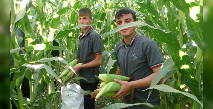 Hasadı yapılan mısırların bölgedeki besi çiftliklerine satılarak değerlendirildiği uygulamalı eğitim projesinde yer alan Tarım Şube 11. sınıf öğrencisi Miraç Yardım , "Tohum halinden hasada kadar her aşamada biz öğrenciler görev alıyoruz. Sulama, sürme, gübreleme gibi işlemleri öğretmenlerimizle birlikte yapıyoruz. Döner sermaye kapsamında hem ürünleri satıyoruz hem de kazanç elde ediyoruz. Ayrıca okulumuzda çeşitli meyve ve sebzeler de yetiştiriyoruz. Geçtiğimiz üç yıl boyunca birçok projeye imza attık" dedi.