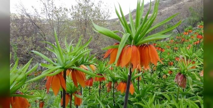 Malatya’nın Akçadağ ilçesinde baharın gelişiyle birlikte açan ters laleler doğaya renk kattı.