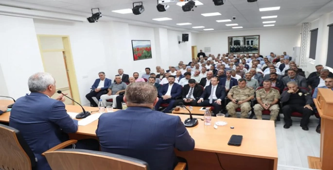 Muş Valisi Avni Çakır’ın başkanlığındaki toplantıya, Muş Milletvekili Mehmet Emin Şimşek, Vali Yardımcıları, kurum amirleri ve muhtarlar katıldı.