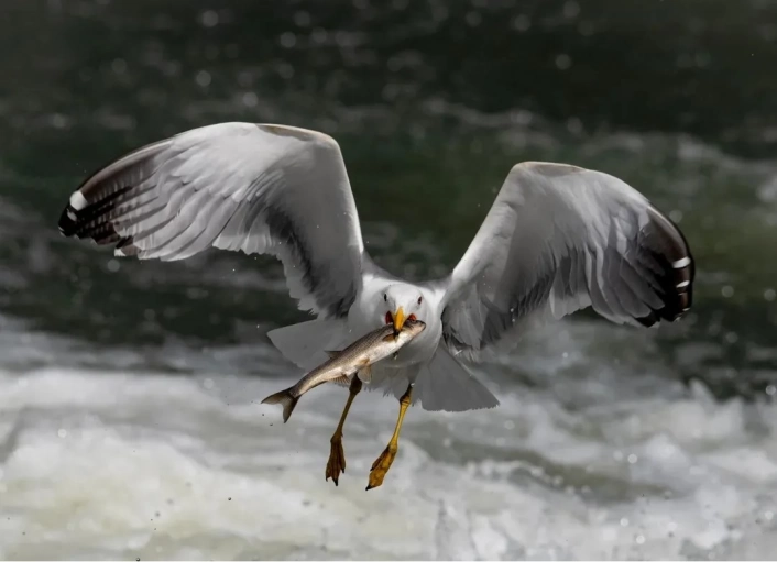 Dünyada sadece Van Gölünde yaşayan ve üreme döneminde tatlı sulara göç eden inci kefalinin engel tanımayan muhteşem yolculuğu devam ederken, martılar ise avlarını kapma yarışına giriyor.