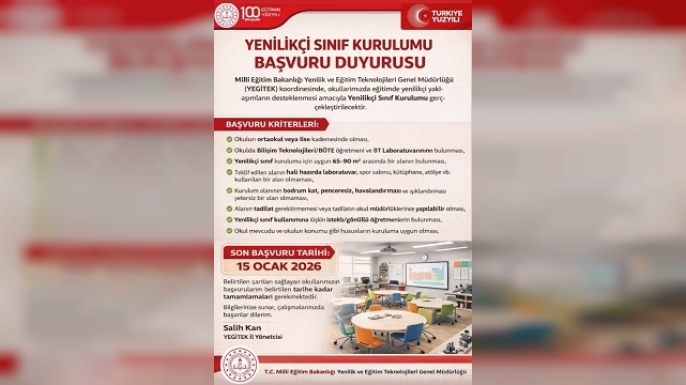 Eğitimde dijital dönüşümün bir parçası olmak isteyen okul müdürlükleri, gönüllü öğretmenlerin de desteğiyle başvurularını 15 Ocak tarihine kadar tamamlayabilecek. Kurulacak bu sınıflarla birlikte öğrencilerin teorik bilgiyi teknolojiyle harmanlayarak pratik beceriler kazanması hedefleniyor.