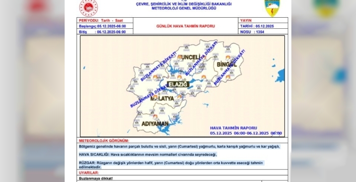SERHED HABER - Meteoroloji 13. Bölge Müdürlüğünden yapılan açıklamada, "Bölgemiz genelinde havanın parçalı bulutlu ve sisli, cumartesi yağmurlu, karla karışık yağmurlu ve kar yağışlı olacak.