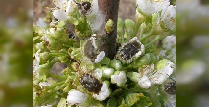 Açıklamada, ergin böceklerin çiçeklerin dişi ve erkek organlarını, genç yaprakları, tomurcuk ve meyveleri yiyerek ağaçlarda meyve oluşumunu engellediği vurgulandı.