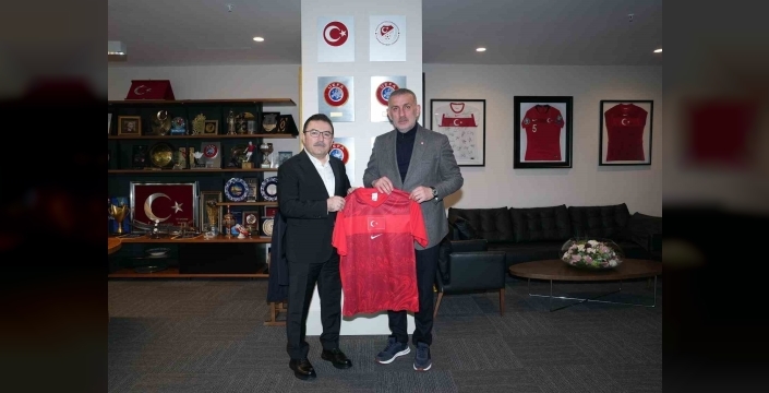 Buluşmada Türkiye Futbol Federasyonu Başkanı İbrahim Ethem Hacıosmanoğlu, AK Parti Erzurum Milletvekili Selami Altınok’a Milli Takım forması hediye etti.