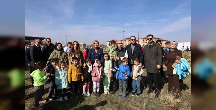 Etkinlik sonunda çocuklar, "Geleceğe nefes" sloganıyla diktikleri fidanların başında hatıra fotoğrafı çektirdi.