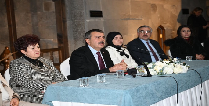 SERHED HABER - Erzurum Yakutiye Medresesi'nde Öğretmenler Odası Buluşmasında konuşan Milli Eğitim Bakanı Yusuf Tekin, Erzurum'da Maarif Kongresi düzenleyeceklerini ifade etti. Bakan Tekin, "Bu yıl ilk defa sahadaki öğretmen arkadaşlarımızın uygulamalarını paylaşabileceği, bu uygulamaları da bilimsel bir formata kavuşturup, bir hakem incelemesinden geçerek paylaşabildiği bir sempozyuma dönüştürdük. Bir kongre havasında yapacağız. Bu vesileyle tekrar hepinizin Öğretmenler Günü'nü kutluyoruz. Sağlık, sıhhat, mutluluk ve içerisinde nice öğretmenler gününü hep birlikte yaşarız inşallah. Bugün buradaki konuşmamız veya toplantımız biz başladığımız gün yani 2023 Haziran ayından itibaren, gittiğimiz her ilde öğretmenlerle sohbet etmeyi, öğretmen arkadaşlarımızla sohbet etmeyi bir disiplin haline getirmiştik. Sonra bunu rutinleştirdik. Öğretmenler Odası başlığıyla oturup sohbet etmek, istişare etmek, uyguladığımız, uygulamaya çalıştığımız programların politikalarının, yeniliklerin sahada nasıl karşılandığını, eksikliklerinin giderilebilmesi, daha sağlıklı yürümesi için neler yapılması gerektiğini, öğretmen arkadaşlarımızla sohbet ediyoruz" dedi.
