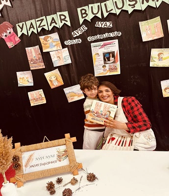 Etkinlik, Ayşe Ayaz'ın kitaplarını imzalaması ve minik öğrencilerle hatıra fotoğrafları çektirmesiyle sona erdi.