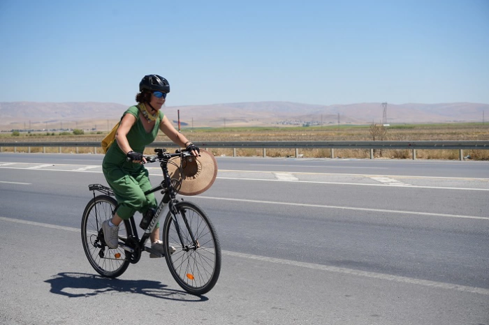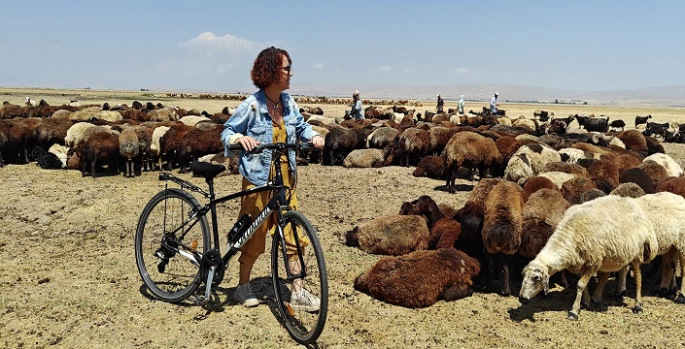 Kadınlara bisikleti tanıtıp farkındalık oluşturmak isteyen Eren, ovada denk geldiği Berivanlarla süt sağıp projesini tanıttı. Bisikletin bir ulaşım aracı olduğunu söyleyen Eren, geldiği Muş’ta kadınlarla koyun sağdı.