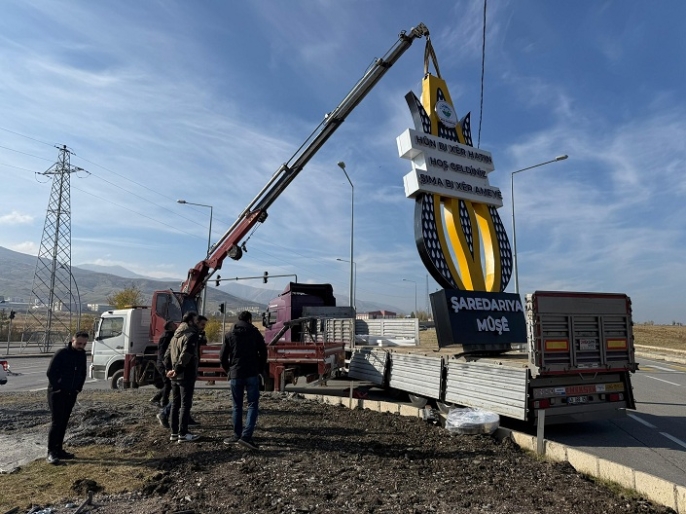 SERHED HABER- Çalışma kapsamında Muş-Bingöl Karayolu üzerindeki Tarihi Murat Köprüsü kavşağı ile Muş-Kulp Karayolu üzerindeki Alparslan Üniversitesi kavşağına modern ve çok dilli karşılayıcı totemler dikildi.