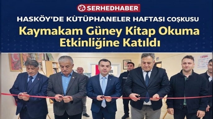 SERHED HABER- Muş’un Hasköy ilçesinde Kütüphaneler Haftası kapsamında düzenlenen programda, İlçe Halk Kütüphanesi’nde sergi açılışı yapıldı, kitap okuma etkinliği gerçekleştirildi. Kaymakam İsmail Güney, öğrencilerle bir araya gelerek okumanın önemine dikkat çekti.