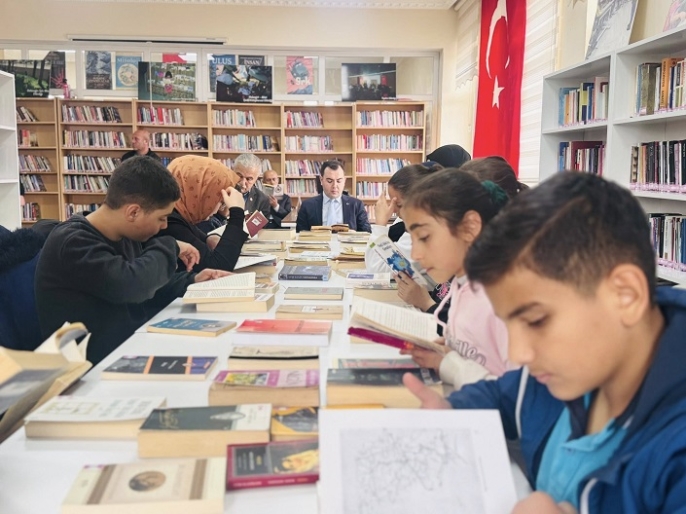 Etkinlikte kütüphane ziyaretçileri ve kitap okurlarıyla bir araya gelen Kaymakam Güney, düzenlenen kitap okuma etkinliğine de katıldı.