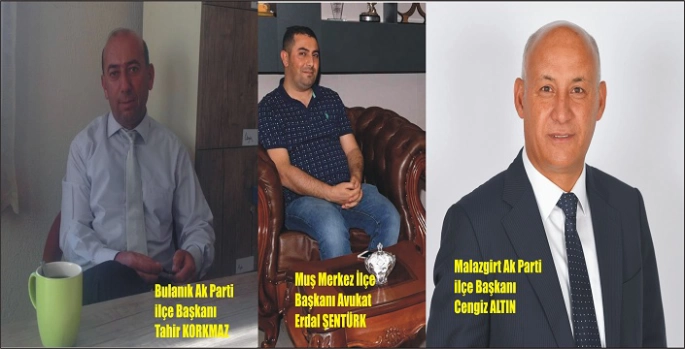AK Parti’de bugün itibarıyla alınan kararda Muş Merkez İlçe Başkanlığı görevini yürüten Halil Sabak’ın yerine Avukat Erdal Şentürk, Malazgirt ilçe başkanlığı görevini yürüten Kenan Deniz’in yerine önceki dönem belediye başkanı Cengiz Altın, Bulanık İlçe Başkanlığı görevini yürüten Mehmet Ali Saatcı’nın yerine Tahir Korkmaz’ın atandığı öğrenildi.