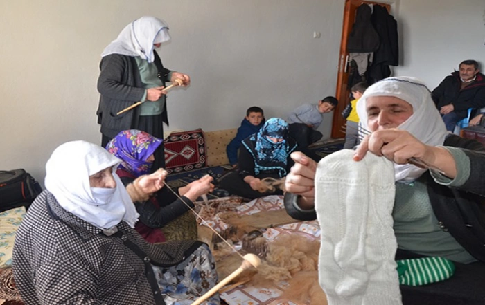Belde sakinlerinden Ayten Dinçer, çorapları koyun yününden yaptıklarını belirterek, “Kışın soğuk günlerinde bu yün çoraplar ayaklarımızı sıcak tutuyor. Önceden koyun ipinden halı ve kilim dokuma işleri yapılırdı ancak artık gençlerimiz bu işlere yönelmiyor. Bahar aylarında topladığımız yünleri ipliğe dönüştürüyoruz ve ince şişlerle çorap örüyoruz. Bu geleneği yaşatmaya devam etmeye çalışıyoruz.” dedi.