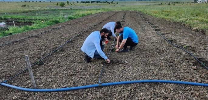 Muş Alparslan Üniversitesi Uygulamalı Bilimler Fakültesi deneme alanında üretim amaçlı Şafak F1 karpuz fidesi ve Kırkağaç kavun fidesi dikimi yapıldı.
