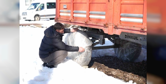 Özellikle Şenova köyünde çiftçilik yapan vatandaşlar, açık alanda bulunan tarım araçlarının lastiklerini naylon branda, çadır ve torbalarla sararak iple bağlıyor. Bu yöntemle lastiklerin soğuk hava nedeniyle çatlamasının önüne geçilmesi ve kullanım ömrünün uzatılması amaçlanıyor. Çiftçiler, kar ve yağmur sonrası tekerlek çevresinde biriken suyun donarak lastiklere zarar vermemesi için araçlarını düzenli olarak kontrol ediyor. Alınan önlemler sayesinde ağır yük altında çalışan lastiklerin kış boyunca zarar görmeden muhafaza ediliyor. İlkbahar mevsiminin gelmesi ve tarım sezonunun yeniden başlamasıyla birlikte koruma amacıyla sarılan brandalar sökülerek traktör ve römorklar tekrar kullanıma hazır hale getiriliyor. Çiftçiler, uyguladıkları bu yöntemlerle hem araçlarını koruyor hem de artan maliyetler karşısında önemli bir tasarruf sağlamış oluyor.