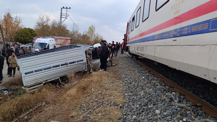 SERHED HABER - Olay, bugün öğlen saatlerinde trenin Tandoğan Köyü'ndeki hemzemin geçitte bir kamyonetle çarpışması sonucu gerçekleşti. Çarpmanın etkisiyle kamyonet savrularak yol kenarına devrildi. Kazayı gören çevredeki vatandaşlar, durumu hemen 112 Acil Servis ve jandarma ekiplerine bildirdi.
