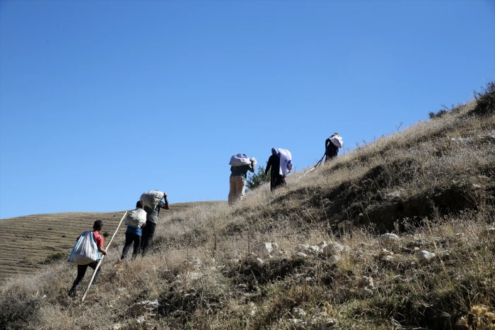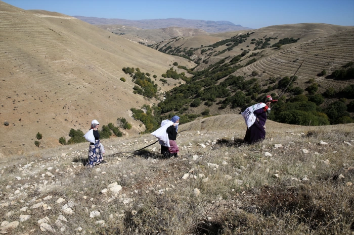 Ailesiyle ceviz toplayan Sevgi Akçan, "Ceviz toplama çok meşakkatli. Dik yamaçlardan yürümek çok zor. Geçen yıllarda ağaçtan düşüp ölenler de oldu. Burası köyün ortak ceviz bahçesi. Herkes istediği gibi toplayabiliyor." ifadelerini kullandı.