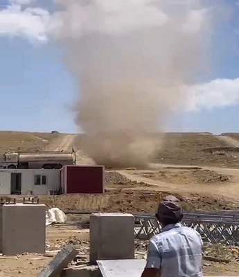 SERHED HABER- Muş’ta aniden başlayan hortum, şantiyede çalışan işçiler tarafından cep telefonu ile kaydedildi. 2 bin 600 rakımlı Kurtik Dağı bölgesinde inşaatı devam eden rüzgar enerjisi santrali (RES) şantiyesinde meydana gelen hortum, kısa süreli paniğe neden oldu.