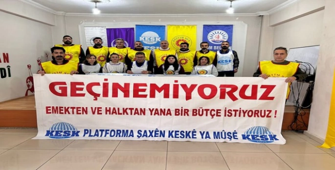 “1 Ocak’tan itibaren vergi ve harçlara yüzde 44 zam yapıldı. 2025 bütçesine göre attığımız her adımda ödediğimiz KDV’de geçtiğimiz yıla göre yüzde 81, ÖTV’de ise yüzde 51 artış olacak. Hükümetin kendi alacaklarına yaptığı zam oranları ortadayken, kamu emekçilerine ve emeklilere reva görülen maaş artış oranının sadece yüzde 11,54 olması utanç verici bir durumdur. Toplumun büyük bölümünü oluşturan işçiler, kamu emekçileri ve emeklileri sefalete mahkûm eden politikalara ve emeğimizin değersizleştirilmesine karşı bir kez daha sesimizi yükseltmek ve taleplerimizi kamuoyuyla paylaşmak için buradayız. Temel tüketim maddelerine ve kiralara yapılan yüksek oranlı zamlar, kamu emekçilerinin geçim koşullarını zorlaştırırken, alım gücümüzün her geçen gün biraz daha düşmesine neden oluyor. Bu nedenle, vergide adaletin sağlanması, ek ödemelerin emekliliğe yansıtılması, insanca yaşayacak bir ücret talebi bugün tüm kamu emekçilerinin ortak talebi haline gelmiş durumdadır. Türkiye’deki vergi sistemi, emeği ile geçinenler aleyhine işlemektedir. Ücretli çalışanlar, gelir vergisi dilimleri nedeniyle yıl içinde daha fazla vergi ödemek zorunda kalmıştır. Kamu emekçileri olarak yılın başında aldığımız ücret, birkaç ay içinde vergi dilimlerinin artmasıyla erimektedir. Adil bir vergi sistemi, çok kazanandan çok; az kazanandan az vergi alınmasını ve servet vergisinin hayata geçirilmesini, düşük gelirli kesimlerin vergi yükünün azaltılmasını gerektirir. Talebimiz nettir: Ücretli çalışanların vergi dilimi yüzde 10 olarak sabitlenmeli, temel ihtiyaç maddeleri üzerindeki dolaylı vergiler kaldırılmalıdır.”