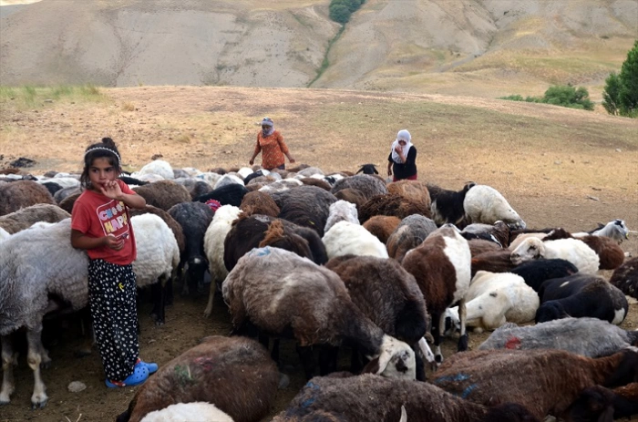 Zorlu yaşam koşullarına rağmen hayvanlarının bakımını ihmal etmeyen kadınlar, diğer günlük faaliyetlerinin yanı sıra koyunlarının kırkma işleriyle de ilgileniyor.